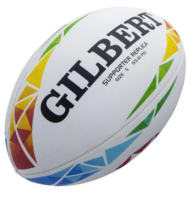 This HSBC World Sevens Series Replica Ball, designed by Gilbert, is modeled after the official match ball, making it great fan memorabilia.  The vibrant, new design incorporates the energetic colors of the HSBC World Sevens Series.