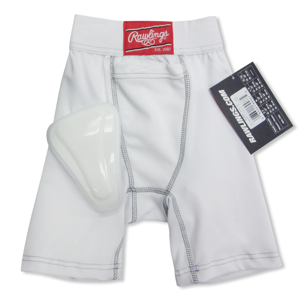 Rawlings moisture wicking compression jill short features ergonomically designed pelvic protector. Offers reinforced stitching and a heavy duty waistband for added durability.