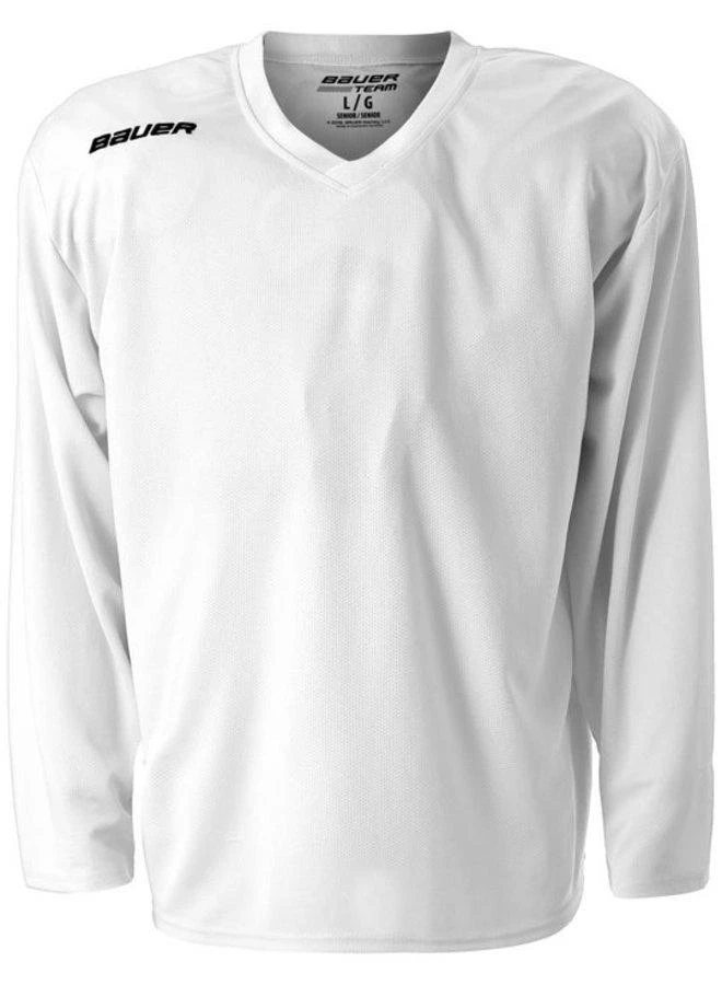 The Bauer Flex Practice Hockey Jersey promotes a lightweight yet durable design that can be used for practice or games. It sports a clean look that offers a ton of room for custom embellishment and has a single heat-pressed Bauer logo on the right collarbone.