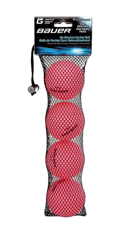The Bauer Hydro-G Liquid filled, no-bounce hockey balls are designed to be an all-surface hockey ball that are able to roll on any surface.