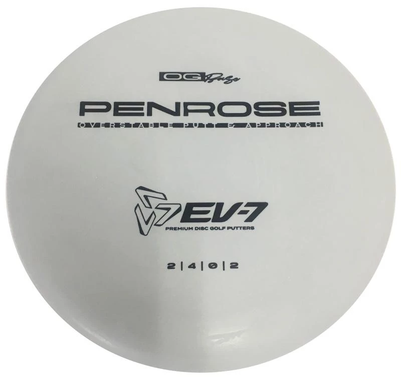 Additional Information:The Penrose is EV-7’s debut putt and approach disc. It has reliable high-speed over stability and resistance to turn, but is uniquely straight with consistent fade at lower speeds on the putting green. With a slightly deeper profile, small bead, and smooth feel, the Penrose fits the hand comfortably, inspiring confidence for both putts and upshots.