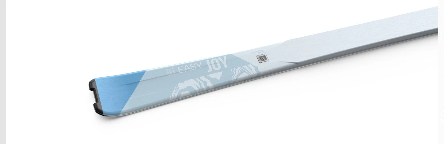 Thanks to its construction, the easy Joy is the perfect ski for beginners. Its the ski, you can trust, accompanying you on your first attempts at skiing. You’ll soon feel more confident and will become more daring. Its integrated tip protection makes this ski particularly robust. Its black and white design represents reliability.
