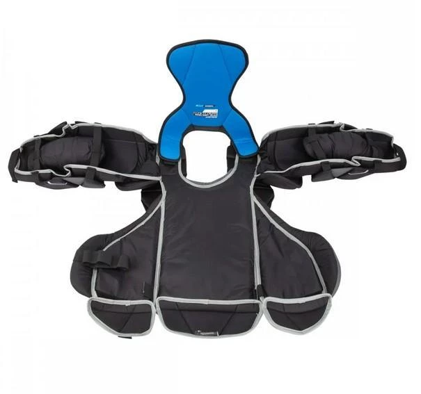 Starting off with the front section of the Bauer GSX Chest Protector, you will see a slightly redesigned hybrid shoulder floater made to be mobile and protective for the goaltender when moving around the crease. Moving down further on this unit, a floating sternum piece provides extra protection to this key area when taking shots. All along the stomach section you will find dual density foam lining the entire stomach along with a core extension to offer additional protection if needed.