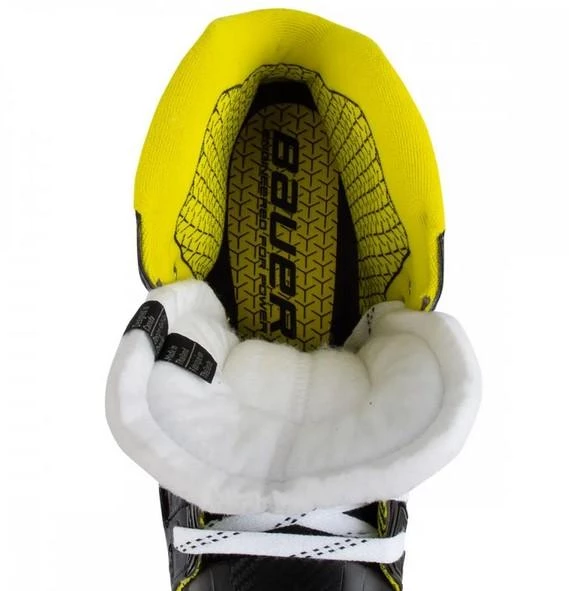 Moving on to the ankle of the Supreme 3S, lightweight memory foam lines the ankle to create a comfortable fit in this skate throughout use. Next is the 40 oz. Felt Tongue with mesh inserts which provides a durable and breathable design. Around on the back, you will see the now standard heel loop which allows the goaltender to have the option of wearing their boot strap behind the skate to push the pad up on their leg. Internally you will feel the hydrophobic microfiber lining provided for comfort and keep the goaltenders feet dry.