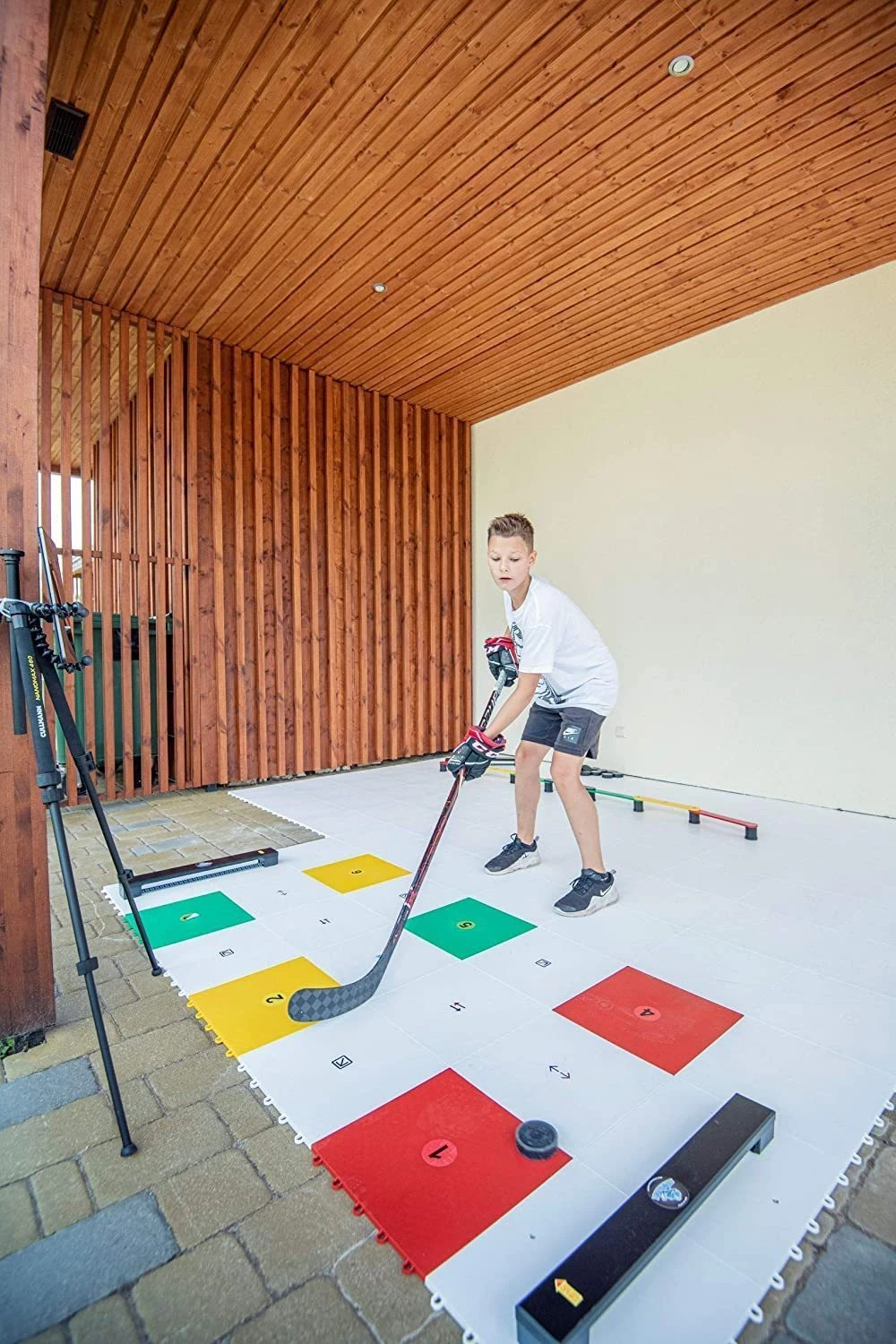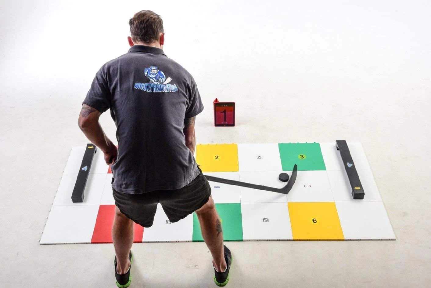 The My Puzzle Systems hockey training aid takes your off-ice game to the next level. These durable and high quality tiles can be used on any off-ice flat surface, so you can practice your stickhandling and shooting year-round. These training tiles are color-coded and numbered, perfect for creating your own structured training or for using the Hockey Revolution app to follow interactive workouts that coincide with the colored tiles.
