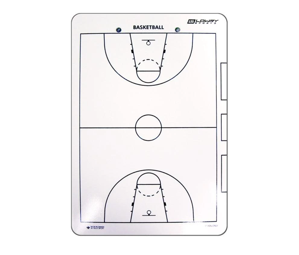 Basketball coaches board, constructed from stiff durable temper hardwood, comes with spring clip and marker.