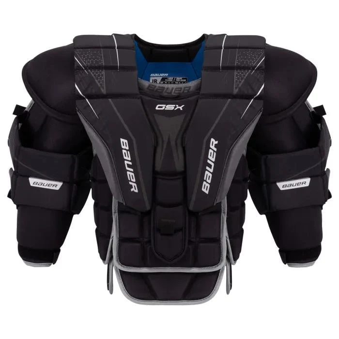 Compared to the Bauer GSX Goalie Chest & Arm Protector, the Bauer Elite Goalie Chest Protector features higher quality materials and construction.