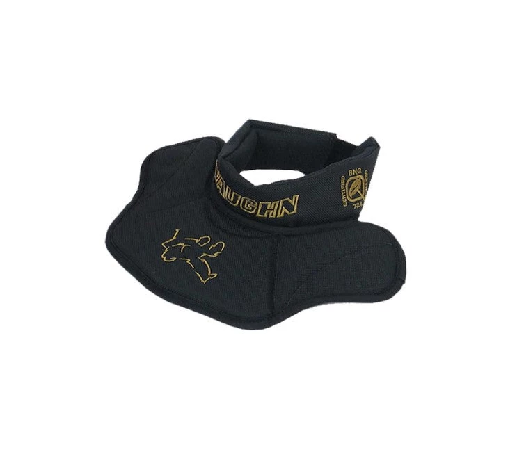 The Vaughn VPC 7000 goalie neck guard has a ballistic nylon exterior construction for durability and protection. This neck guard has cut resistant internal and external materials for maximum protection. The higher neck line gives additional coverage and the plastic reinforced clavicle area provides extra protection for the collarbone area.