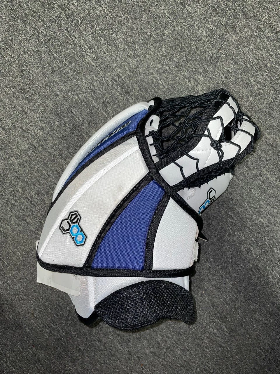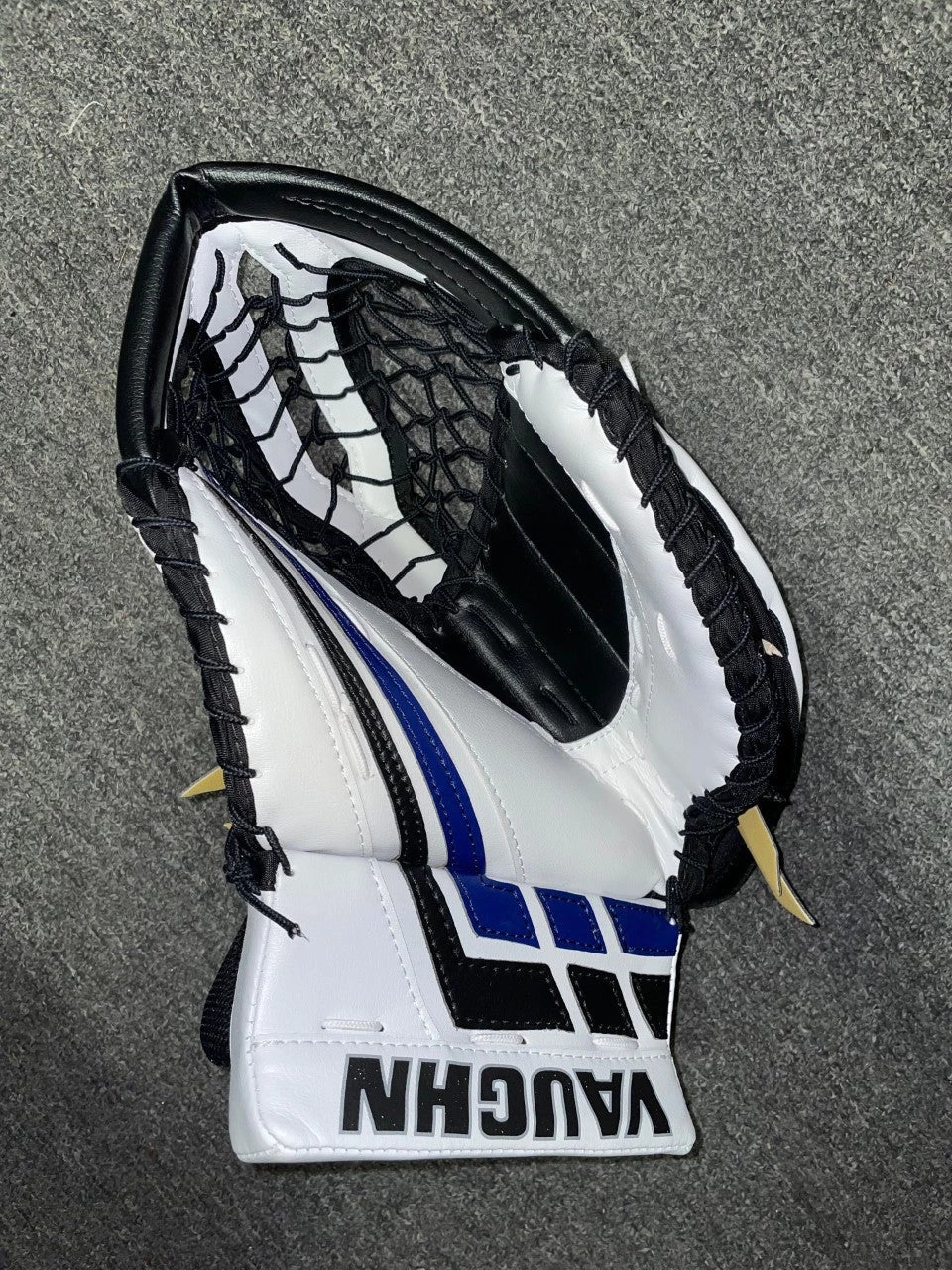 Vaughn’s Velocity line is back again in intermediate sizes with the VE8 Int goalie trapper. The Vaughn VE8 int goalie catch glove is built off of its bigger brother the VE8 Pro senior goalie trapper, but shrinks the size by 4% to make it more comfortable for smaller, or growing goalies alike.